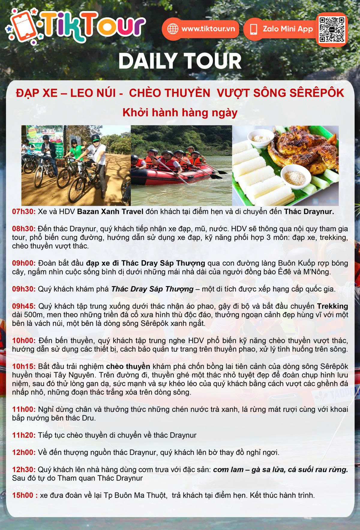 Tour khám phá trải nghiệm: ĐẠP XE - LEO NÚI - CHÈO THUYỀN VƯỢT SÔNG SERÊPÔK