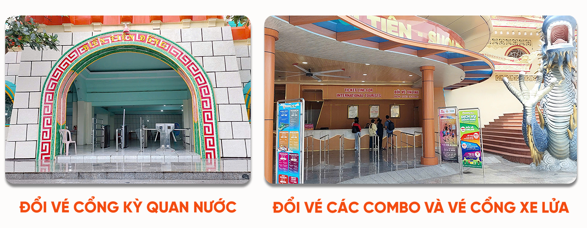 + Khách hàng mang vé điện tử đến quầy đổi vé online, đối thành Vé giấy để vào và sử dụng trong khu du lịch.