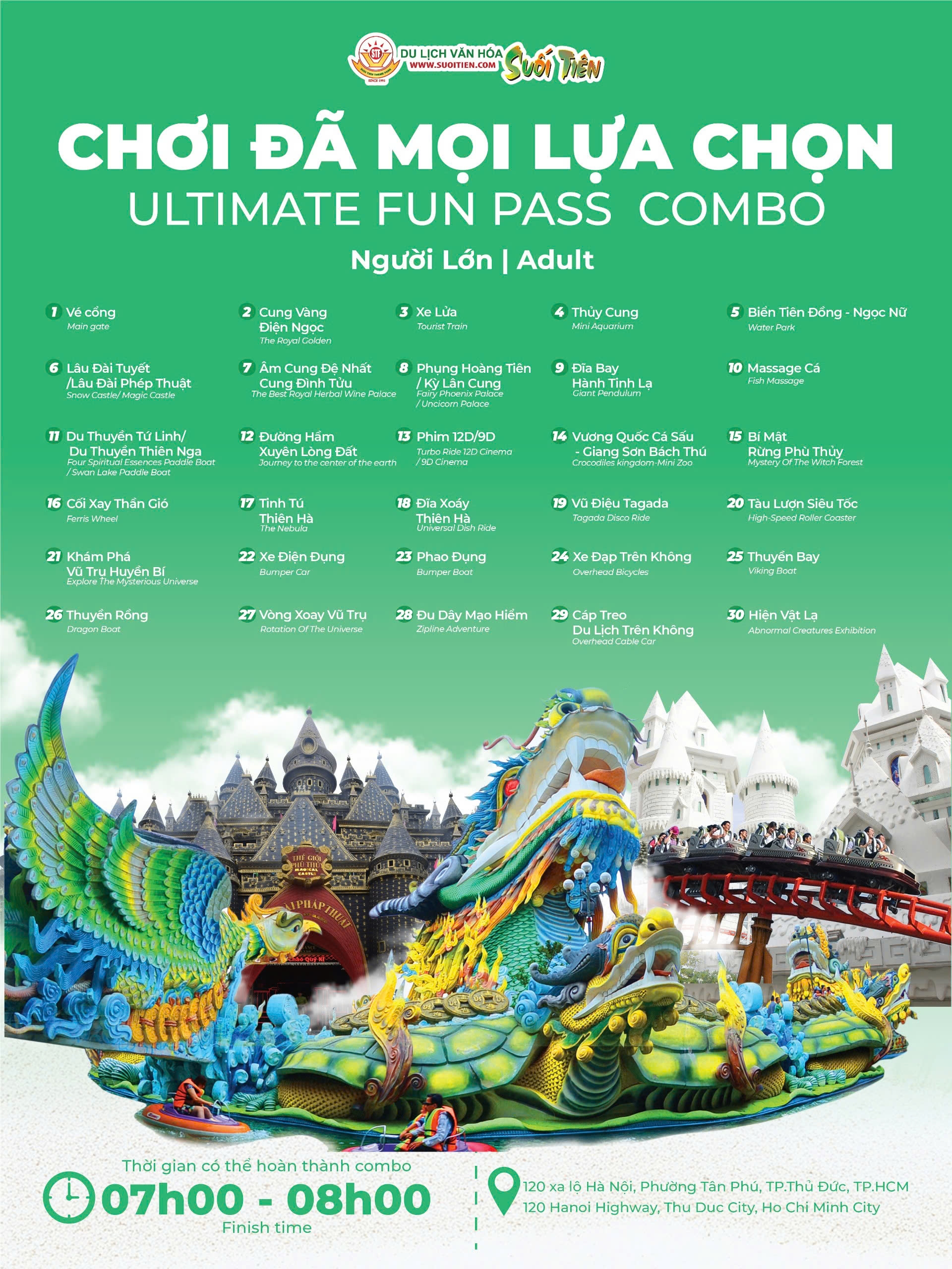 - Đến Công viên văn hoá Suối Tiên - khu vui chơi giải trí và văn hóa – lịch sử – tâm linh nổi tiếng hàng đầu tại TP.HCM trải nghiệm các hoạt động đặc sắc.